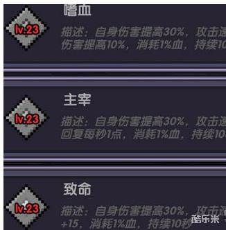 靠普攻的话,暴击率高就选嗜血,暴击率低就选致命。耗血也别担心,后面会说命中吸血这个武器自带属性。