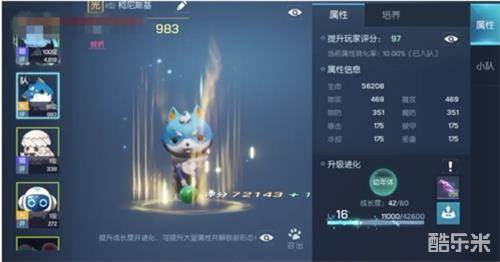 使用宠物营养道具可以提升营养值,从而提升宠物营养等级。每次宠物营养等级提升时都有概率随机提升成长度。宠物每次成长度满足进化需求时,即可进行宠物进化。宠物有幼年体、成年体、完全体三个进化阶段。例如在宠物成长为完全体时,它可以给自身转化6%的属性,从最初的两个潜能芯片变成六个!它在进化时还可以一次性获取大量的属性,增加自身评分。而进化阶段越高,除了宠物的外形会变帅之外,还能够一次性获得大量属性,与此同时,在转化率与芯片槽上也会有明显的增幅,后续升级能够获得的属性也会比未进化时要多。