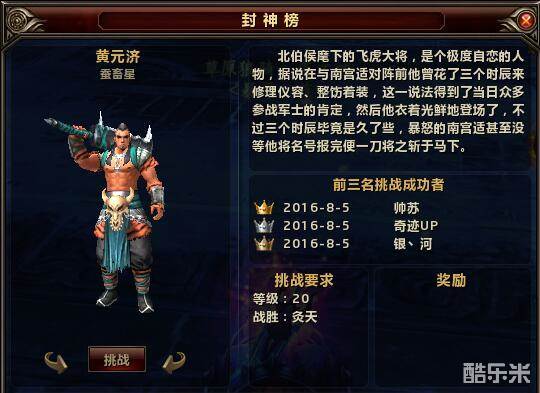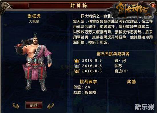 【集合封神录开启高等挑战资格】