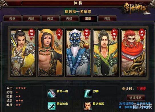 准备阶段:进入战场之后会给玩家留有120秒的时间来选择神将并且与队友商量战术。不同的神将有不同的定位,配合默契,根据自己的兴趣爱好和不同神将的特点以及团队需要来选择神将才是取胜的关键。
