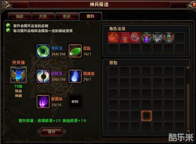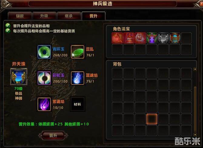 创世神话法宝晋升是个技术活儿,也是高战力的玩家不能缺少的一个强化点哦。