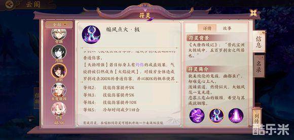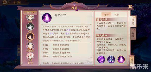 罗刹:普攻80%概率附加一回合灼烧,二技能单体系数420,比大招的400还高一点,打灼烧目标还会有一次额外的群体200伤害,跟日游巡定位差不多。大招单体系数400,附加两回合灼烧,妖界会获得额外回合,而且带有稀少的符咒效果(目前好像只有罗刹和云中君能给符咒),之前分析筝的时候猜测过符咒可以绕过筝的被动,当然,需要验证。