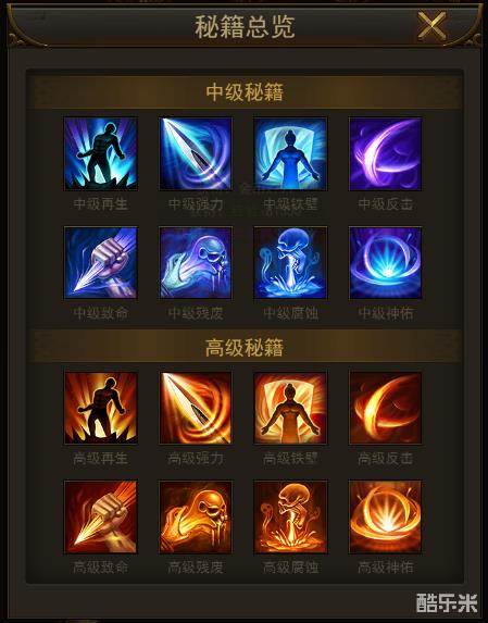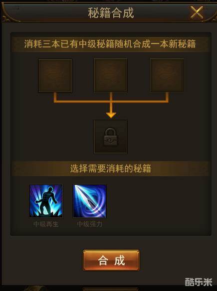 秘籍合成:玩家可以将三个任意中级秘籍合成随机一个新秘籍