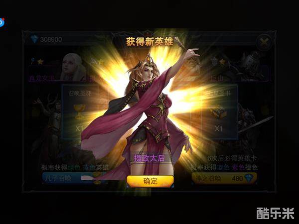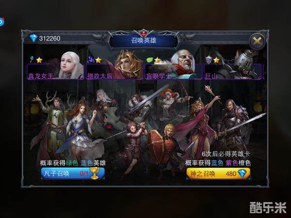 首次进行神之召唤是100%必得紫色英雄召唤卡,能壮大自己的英雄阵型。
