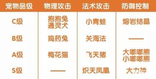 目前游戏中的宠物有三种,分别是:物理攻击型、法术攻击型、防御控制型。