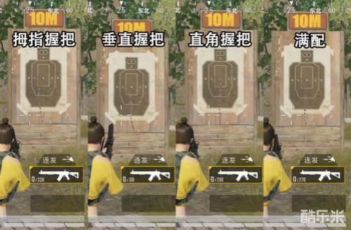 拇指握把的表现也跟战术枪托差不多,并没有什么明显的改善。垂直握把对垂直方向的后坐力就有明显的改善了。直角握把对于几乎没有水平方向后坐力的MK47来说显得有些多余,弹道跟裸配没有什么区别。所以垂直握把是握把里面最适合MK47的。在装配了枪口补偿器,垂直握把,战术枪托以后MK47的弹道就变得十分稳定了。