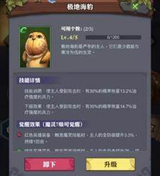 宝石讲完了,下面就随便讲讲魔灵,魔灵我从游戏开始就带起了初始穷三强(铜斑蛇、极地海豹、食人花)中的极地海豹,毕竟前期也没什么可选择的魔灵,按照你喜欢的方式去带就好。我是站在毕竟是个前排的份上,极地海豹回血和减伤,无论输出还是治疗都带这个,毕竟活着才能输出嘛。