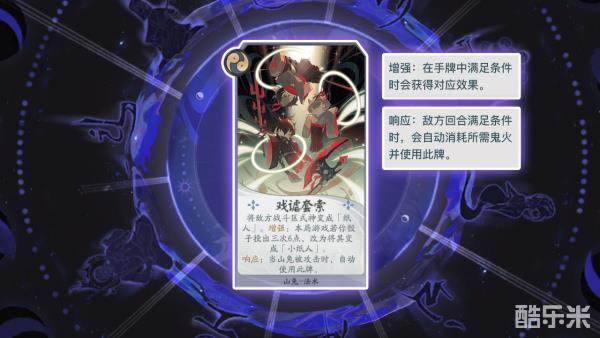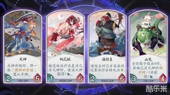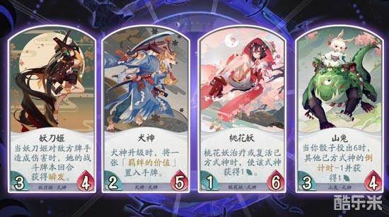 犬 神:还是作为一个主要的前期式神,通过“羁绊的价值”使犬神快速成长;战斗牌能为其提供护甲和高额的力量,“心即归处”能够瞬发复活犬神,增加了续航,还不浪费鬼火,是一个非常好用的复活卡牌。