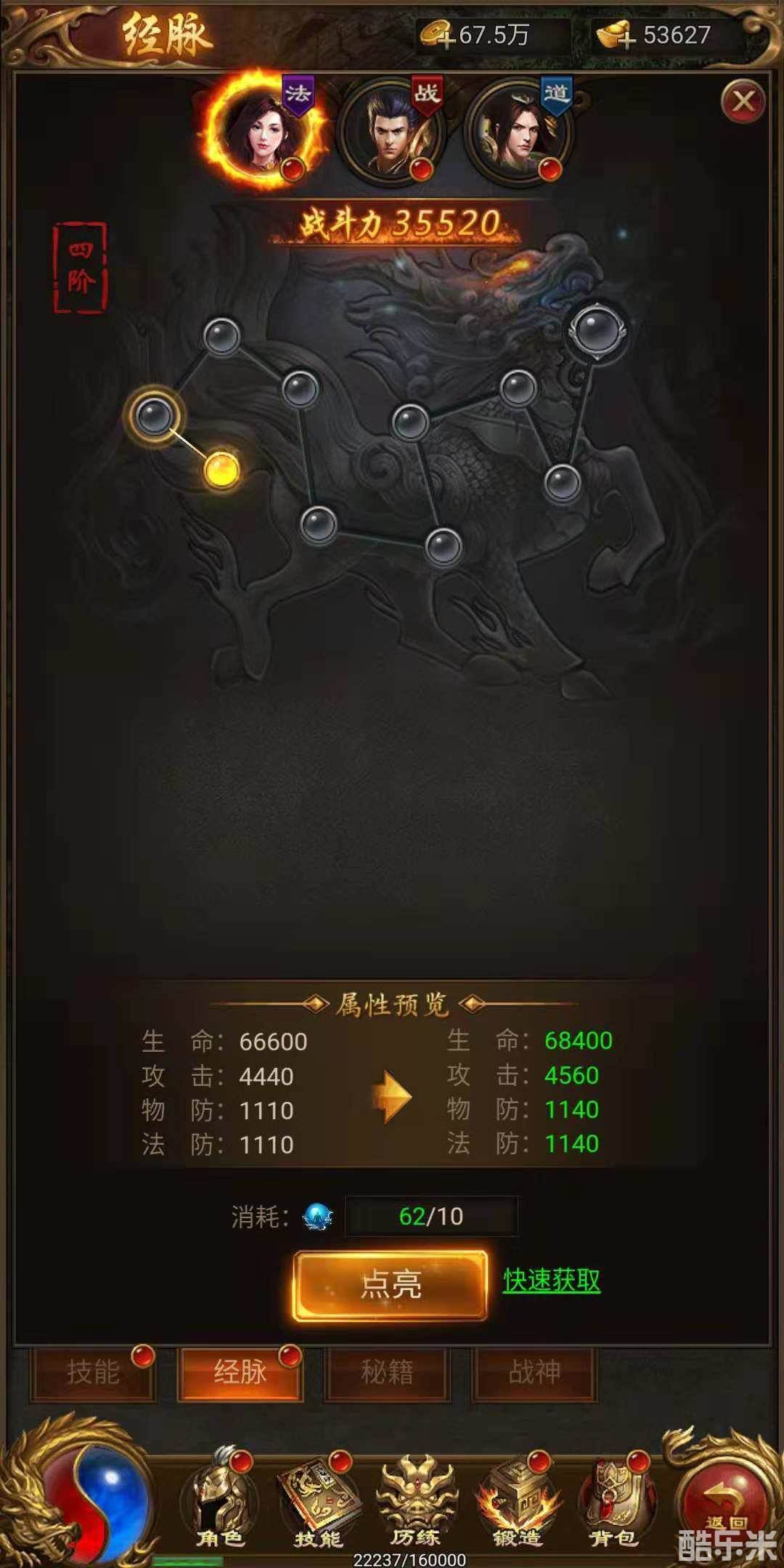 点亮经脉,可以角色的基础属性,是玩家必不可少的提升实力的一部分。