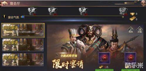 每完成四次宴请,第5次宴请将【必定】赠送一名【史诗】武将。