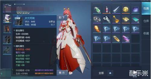 评分主要涉及到角色各项属性的数值,而装备便是各项属性的核心提供者。装备等级通过颜色划分,以低到高的品质为:绿-蓝-紫。其中紫色品质最好,而品质越好,提升的属性也就越多,提升的评分也就越多。比如这件拥有六项属性的靴子,就提供了945点评分。
