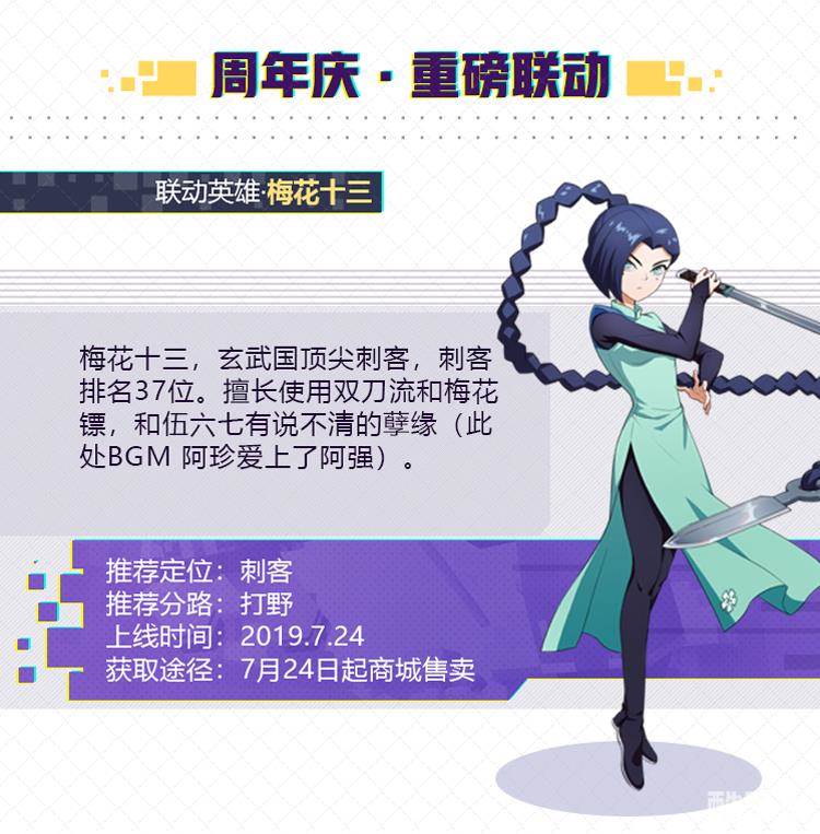 阿珍爱上了阿强,在一个没有星星的夜晚!周年庆版本惊喜不断,《非人学园》x《刺客伍六七》暑期联动来袭,联动英雄梅花十三现已正式上线。追赶着伍六七来到学园的梅花十三,依旧美丽凌厉,在她高冷的外表之下,其实心中也藏着温柔如水。她将用怎样精彩的战斗,为我们展现刺客榜排名37位强者的实力呢?