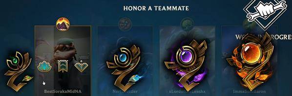 Simurgh:荣誉等级和游戏的胜负完全没有关系,当然啦,你赢一局游戏的时候队友可能有更好的心情去给你投票就是了。达到顶级的荣誉等级不会是一个短短几周就能完成的事情,你要做的是持续的保持竞技精神,在游戏中表现良好。(你不用刻意去表现得良好或者非常积极,例如在被对手挑衅或谩骂的时候,你能够继续好好地完成一局游戏)我们希望理想的情况是,当每个赛季结束前,一直表现良好的玩家可以到达荣誉等级5。