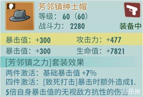 我们不难发现,所有品质的配件不管套装属于哪种,都只有6个属性,且每个配件根据名称不同,分别有2个固定属性和2个随机属性(下图极品芳邻镇绅士帽,有黄色条纹背景的暴击值和攻击力是固定属性,而其下方的暴击值和生命值则是随机属性),那么问题就来了: