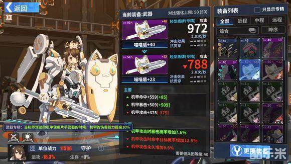 所以同装等的情况下词条的好坏影响非常大。如上图同是50级喵喵刀。三把刀词条是不同的。对战力加成也不同。