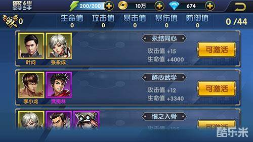 游戏中的宗师不仅武艺高强,更是设计了情感部分,让玩家在游戏中也能体会大师的情感。游戏中主要角色之间都会有羁绊的设置,玩家可以激活羁绊,如叶问和张永成的羁绊“永结同心”,激活之后会增加人物的攻击和生命值,助力玩家战斗!