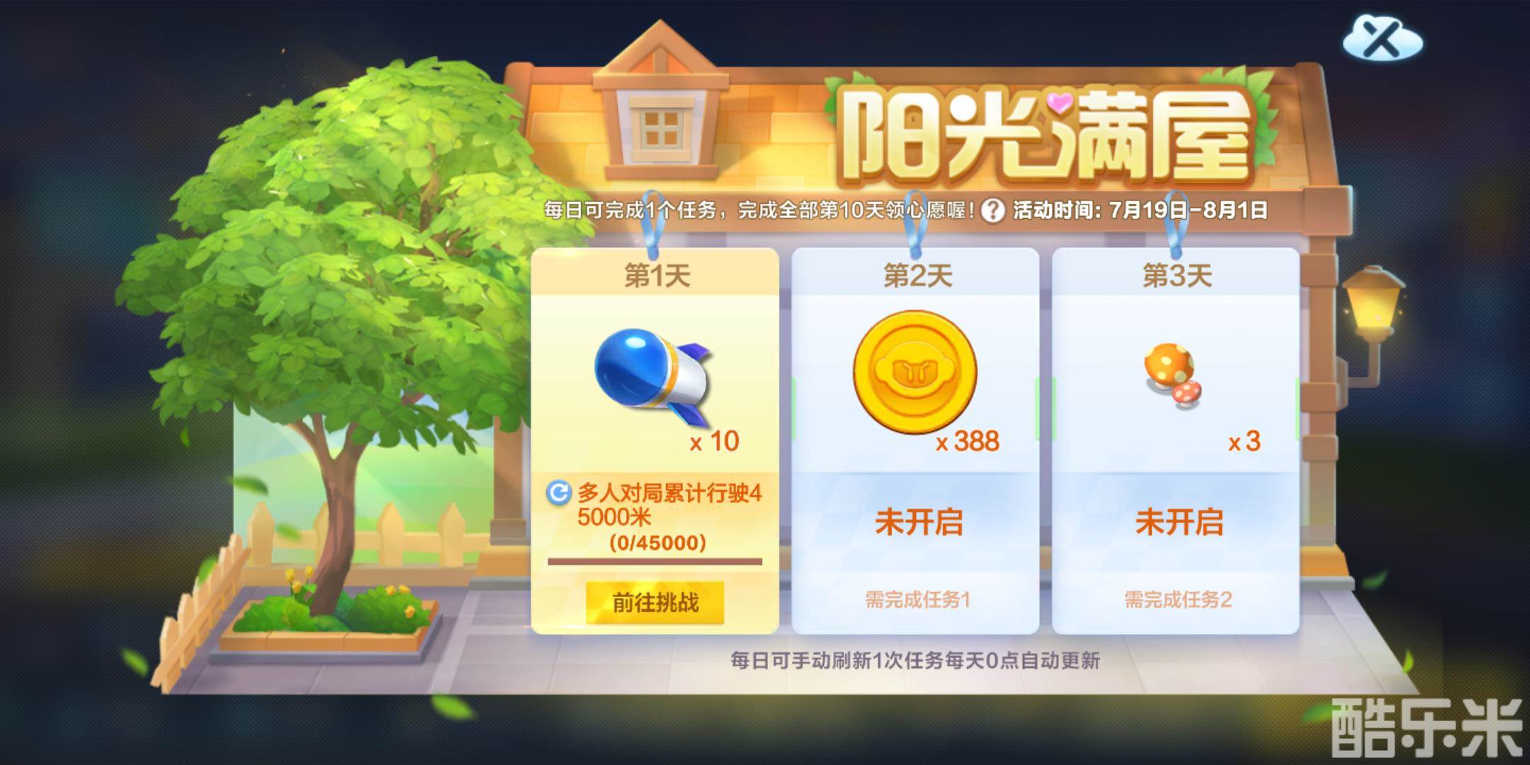 最关键的是每天都会送给玩家一个礼物,至于你能开出什么就要看运气如何了,当然要是你觉得有些任务是在太困难也可以选择手动刷新一下,说不定能换出一个非常轻松简单的任务哦。今天跑跑卡丁车手游免费获得小屋装饰方法就为玩家朋友们介绍到这里了,其实很多任务是可以放在一起完成的,其中收集音符碎片就可以和任何一个任务相结合,只要你跑图就算。