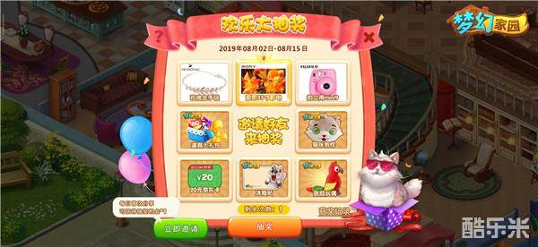《梦幻家园》暑期版首推“欢乐大抽奖”活动,只要邀请好友一起加入游戏,就能额外获得抽奖机会,赢取索尼55寸液晶大彩电、施华洛世奇手链、阿玛尼#405口红、富士拍立得、精美游戏周边和游戏礼包等大礼!不要犹豫啦,独乐乐不如众乐乐,呼朋引伴一起来吧!