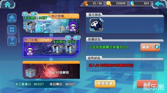 ④.被100%侵蚀的装备在绝对领域中第1关至第12关中都无法再使用!所以前面关卡的高分需要先刷好,再去刷7-12关,当7-12关得分不理想时可以直接暂停退出(通关后装备就会增加50%侵蚀率)