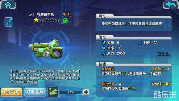 手枪类只推荐一把,强酸破甲枪,手枪走A是不降低移动速度的,腐蚀攻击打456关的机械单位绝佳,而硬控也比初始手枪单体的迟缓好用,最重要的是获取容易,5天就能入手(相比之下,鱼骨头能换的最通用的装备)。