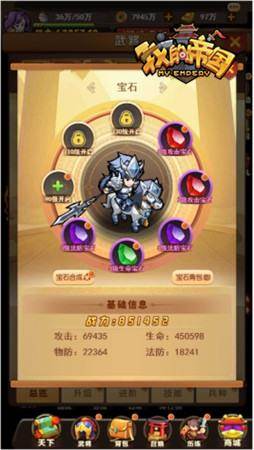 九州地大物博,浩瀚无界,常有异宝出世,而宝石无疑是各路诸侯争抢的重要资源。在37《我的帝国》中它们分别为:攻击宝石、物防宝石、法防宝石和生命宝石四种。品级由1级上升到10级,品级越高,属性增幅越强。主公可以消耗四个同品级宝石,合成更高品级的宝石,将宝石佩戴在武将身上,可以提高武将的对应属性。