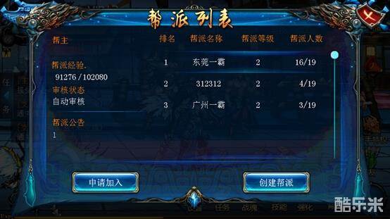 创建帮派成功后,创建该帮派的玩家自动成为帮主,可通过处理申请来接受其他玩家的申请或拒绝其他玩家的申请。