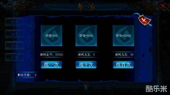 点击帮派中的训练按钮切换到帮派训练界面。