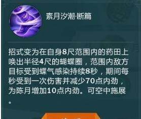 第二个有所改动的技能是素月潮汐,素月潮汐的改动点有两个,一个是对于2秘籍的增强,每跳破劲50点增强为70点。