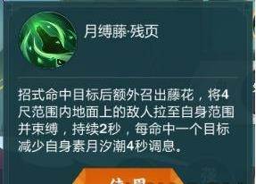 第三个被改动的技能就是月缚藤,月缚藤的1秘籍也是大幅度提升价值量,从上版本的空投藤花变为藤蔓击飞+藤花拉拽+减素月潮汐CD,但是也更要求月缚藤的命中率