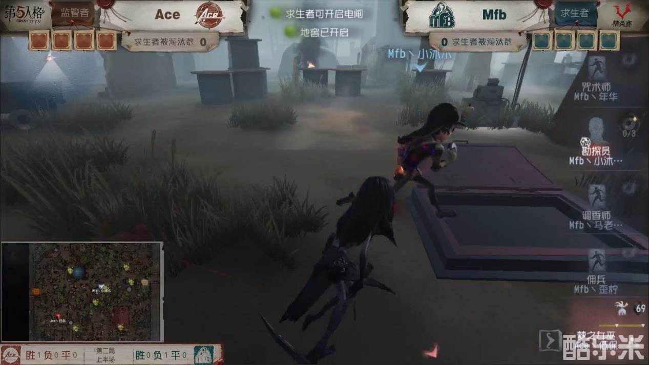 在本周第一个比赛日Mfb战队对阵Ace战队第二局上半场的比赛中,由Mfb丶马老六扮演的调香师、Mfb丶小沐木扮演的勘探员、Mfb丶年华扮演的咒术师以及Mfb丶歪柠扮演的佣兵组成的求生者阵容发挥出色,面对监管者梦之女巫凭借着高度默契的团队配合以及对比赛细节和技巧的把控成功完成全员逃生。