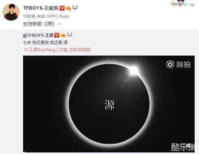 新歌《源》上线之后,作为兄弟俩的王俊凯和易烊千玺相继微博上线转发王源的新作品 帮忙宣传。