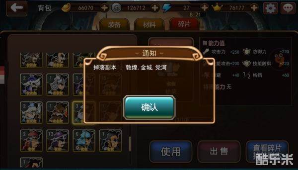 在背包中点击武将碎片,在点击武将碎片掉落地点,可查看每个武将掉落副本。