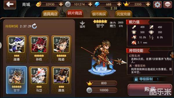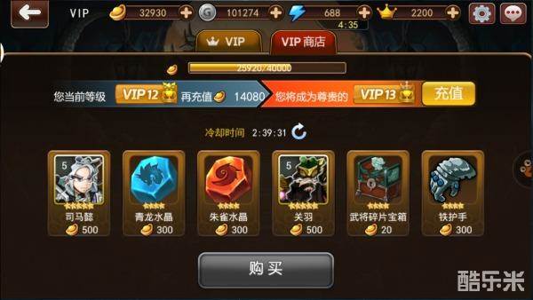 VIP商店中出售的武将数量比其他商店中种类比较稀少,出售的武将也基本都是猛将。