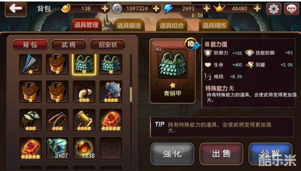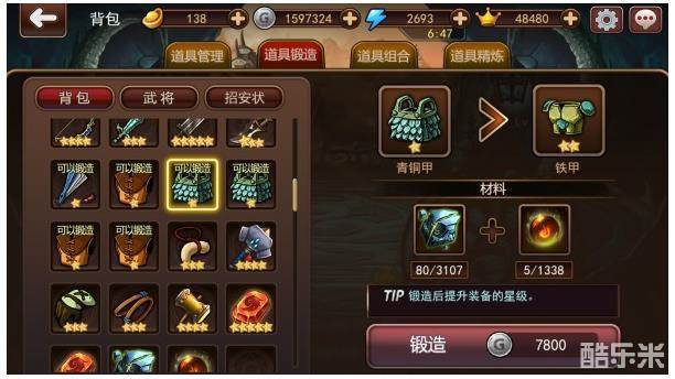 《三国乌托邦》中道具锻造是提升当前装备星级的重要功能,现在介绍下 道具锻造(提升装备星级)的神器功能。