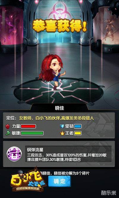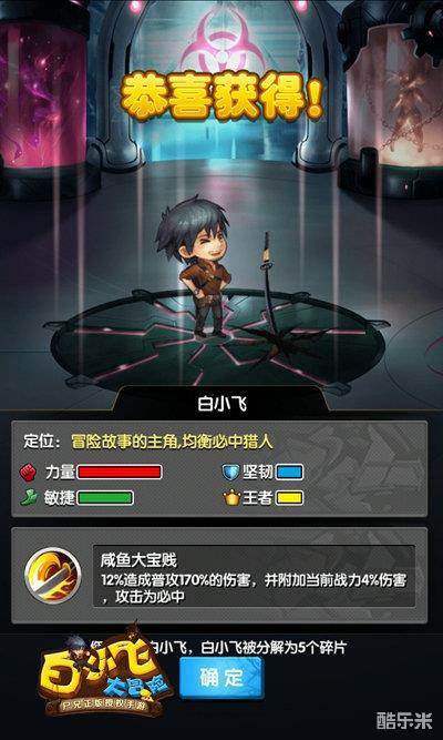 在游戏中,白小飞是重击流中战力最高的卡牌,他的主动技能“咸鱼大宝贱”伤害高,攻击必中。较高的力量和敏捷带来了不错的暴击率和闪避率,同时高王者又带来了高伤害。再搭配上不低的技能触发概率,使得白小飞的主角光环更加耀眼。白小飞的碎片很容易获得,玩家可以轻松将他觉醒至较高品质。
