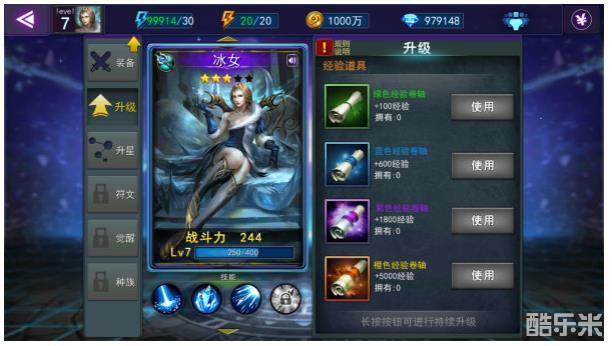 升级可使用升级卷轴卷轴的品质不同,所提供的经验也不同。如果小伙伴们想快速使用,按住不放即可。