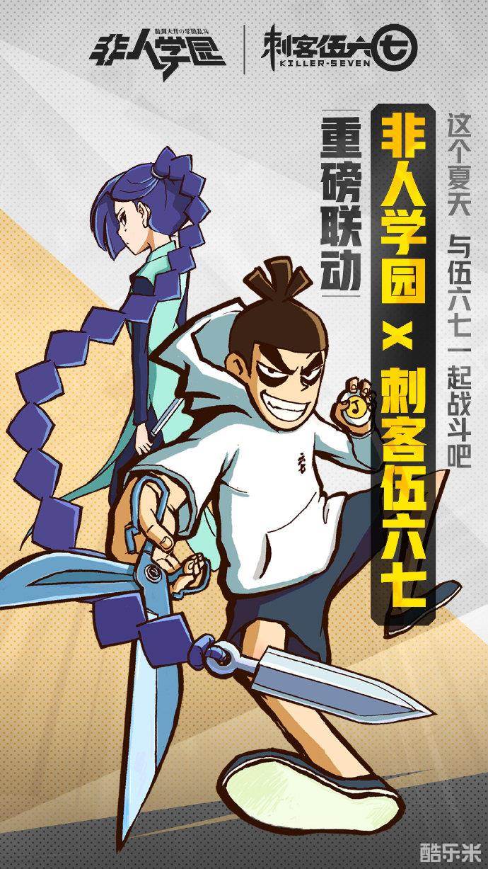 《刺客伍六七》x《非人学园》联动英雄伍六七与梅花十三也会现身,这次要完成的刺客任务是捕捉阿柒!找到阿柒和十三,获得《刺客伍六七》官方CP向徽章,就可以来找我们兑换联动专属礼包哦!