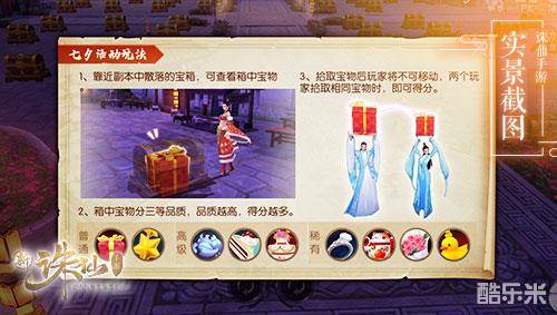 仙友们可以在【节日-情缘对对碰】中单人或组队进行2V2匹配。进入活动副本后,地面散落着宝箱,靠近宝箱即可查看箱中宝物,当同一队伍的两个玩家拾取相同的宝物时,可触发情缘碰撞成功,获得积分,宝物品质越高,则获得积分越多。