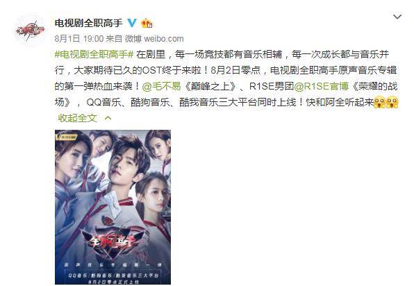 《全职高手》原声音乐专辑上线,毛不易、周震南、何洛洛等献唱