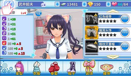 装饰主要影响的是拳种的抗性。不同装备对不同拳种的抗性不同。和拳套一样,装饰的选择也有特定的主属性,且与角色的属性密切相关。比如猫耳主要是上勾拳抗性的加成。戴上了猫耳,对手上勾拳对你的伤害就很低啦~不过不同等级的装备加成也不同哟,等级越高,相关的加成就越高。
