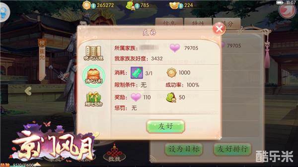 家族之间资源相争在所难免,能脱颖而出的关键在于家族各个成员的实力,成员的提升渠道主要通过在家族中的心法学习等渠道,家族与成员的关系则是一荣俱荣,家人的羁绊是京门中最难打破的存在。去权贵那里多多走动,赠送礼物,是拉拢权贵屡试不爽的法宝,当然,别的家族也是这么想的,请万分警惕起来!