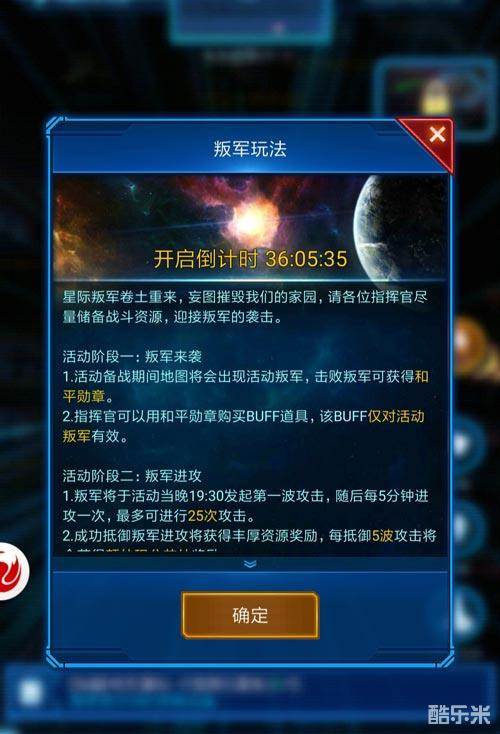 进可攻,退可守,方可称得上星际间首屈一指的指挥官,在《银河战舰》叛军暴乱活动第二阶段,不愿善罢甘休的叛军部队将重整旗鼓,向指挥官们的基地发起进击。不仅每隔5分钟便骚扰一次,而且在未能成功击破基地之前,进攻次数将多达25次,诸位指挥官可要小心为妙了!
