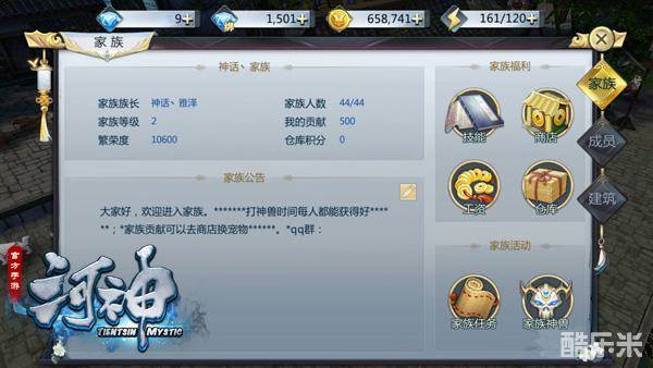 为家族鞠躬尽瘁,怎会少得了回报!《河神》手游的家族福利非常丰厚,奖励可提升自身属性和召唤小伙伴。每日完成家族任务后,玩家都可以领到一份工资。金币、钻石、经验、时装碎片、宠物碎片、坐骑碎片等,均按家族贡献进行分配,能者多得,公平公正。