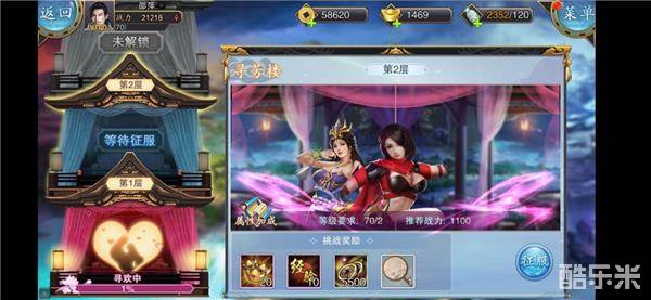 玩家通过第一章第四关之后就会开启寻芳楼,寻芳楼玩法对于新手是十分友好的,门槛低,奖励多,重要的是挑战无消耗。在游戏前期,玩家可以通过闯关寻芳楼,来获取提升武姬亲密度的道具来使自身战斗力增强。寻芳楼的奖励机制分为两种,一种是闯关奖励,另一种是挂机奖励,所以挑战不了高楼层的玩家,一样可以通过挂机来获得丰厚的铜币与元宝奖励,甚至还有装备掉落哦。值得注意的是,虽然可以无限挑战寻芳楼,但是每一层会有等级限制,