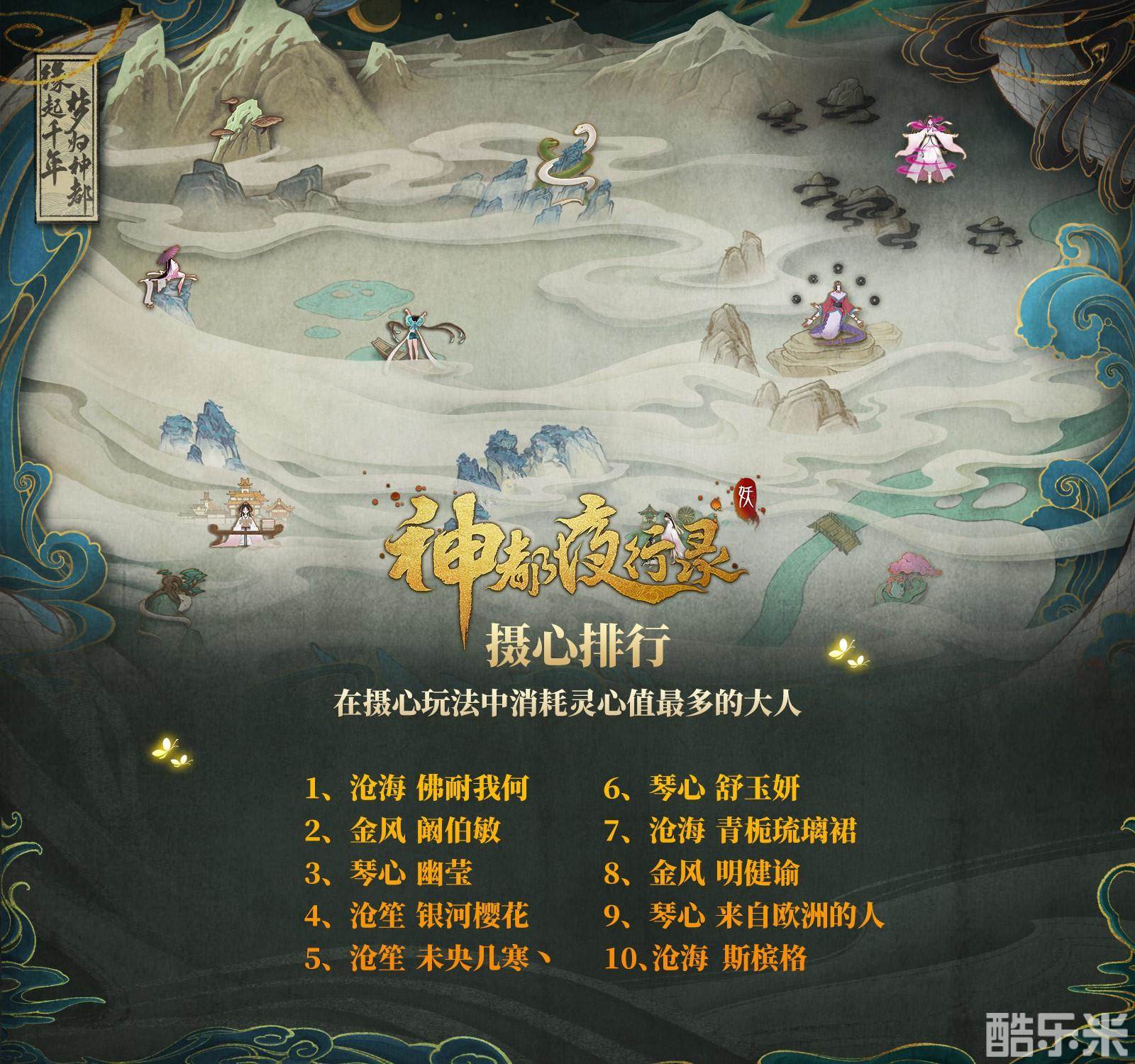 云兮悠孝在封印玩法中消耗灵心值最多,绵长的气力连心魔都不得不拜服。朱雀衣、涂山仪梦、炻意望城、明熙妍、申鸿、明心妍、又双叒叕亏了、凝政劭、衡赐分居第二至十位,都是拥有大毅力的才俊。