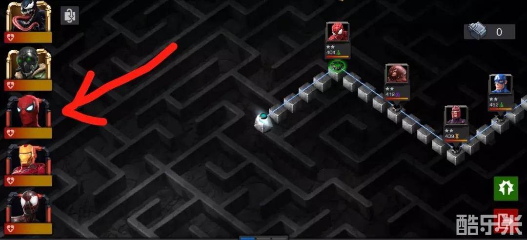 我方出战阵容用蜘蛛宇宙或者邪恶六人组或者共生体英雄,挑你这些英雄中战力最高的,剩下4个可以选加暴击或者加攻击的,只打进门第一个怪,红蜘蛛,战力只有400.