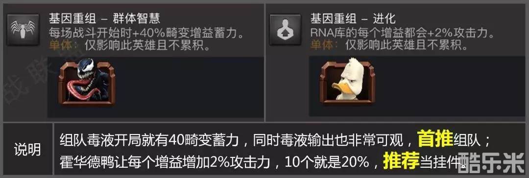 漫威超级争霸战中毒液鸭就是靠累积共生体增益来获取回血、回能及狂怒效果,而挺进神级英雄的行列的,这里小编带来的就是毒液鸭使用心得分享,毒液鸭的玩法可以说是非常的复杂的,想要玩好,可是非常的不容易。