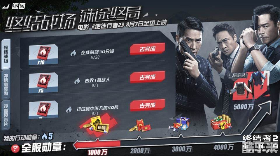 玩家的个人行动勋章数量也将每日进行排名,排名前列的玩家将有机会获得电影兑换券和签名照等实体奖励!