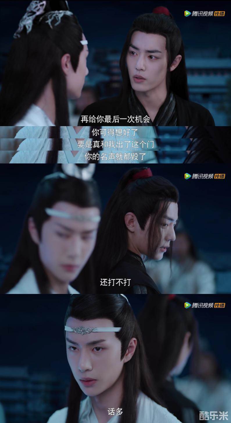 桑榆在看原著时对台词印象深刻,但对场面并没有太多感慨,但这里的场面布置特别好,众仙门弟子把忘羡二人团团围住,使他们成为众矢之的。而蓝忘机毅然决然选择站在魏无羡身边,和他一起并肩作战,把后背交给对方。