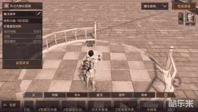 在第一个圆形地型旁放上木地板,然后放上矮墙辅助,在矮墙上放置旧石质扇形地板拼成一个圆形。